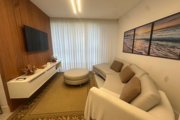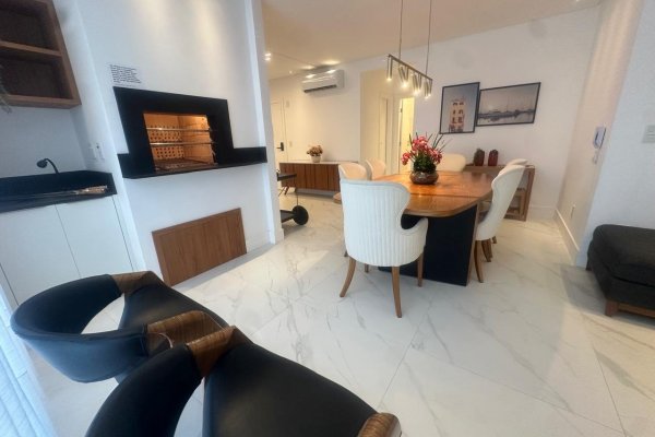 Apartamento 3 suítes, Quadra Mar de Itapema SC. 130 m² privativo, todo mobiliado, living 2 ambientes, piso porcelanat